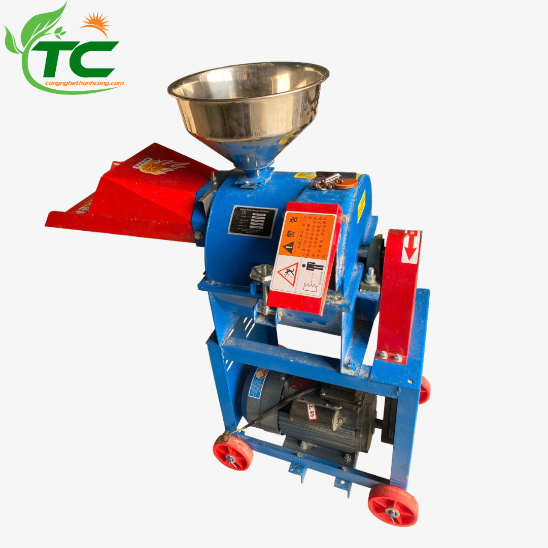 Máy hoạt động theo cơ chế kết hợp băm + nghiền: