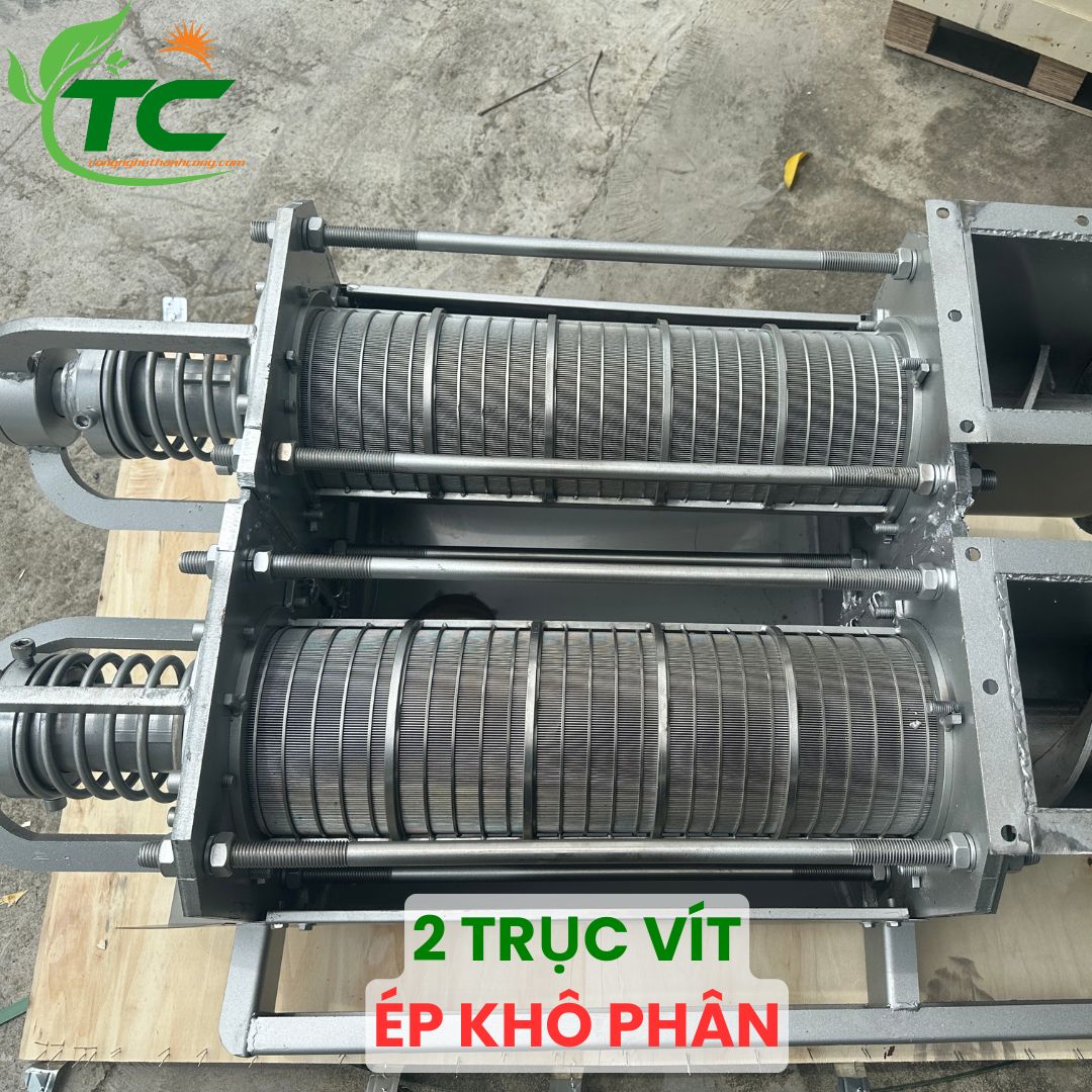 - Trục vít ép khô : Được làm bằng inox 304, kiểu xoắn ruột gà giúp ép khô phân 1 cách tốt nhất.