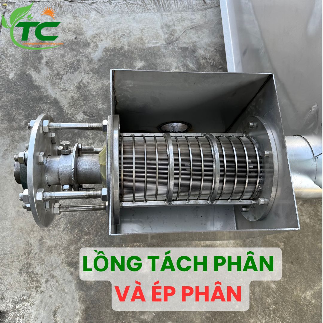 - Trục vít ép khô : Được làm bằng inox 304, kiểu xoắn ruột gà giúp ép khô phân 1 cách tốt nhất.